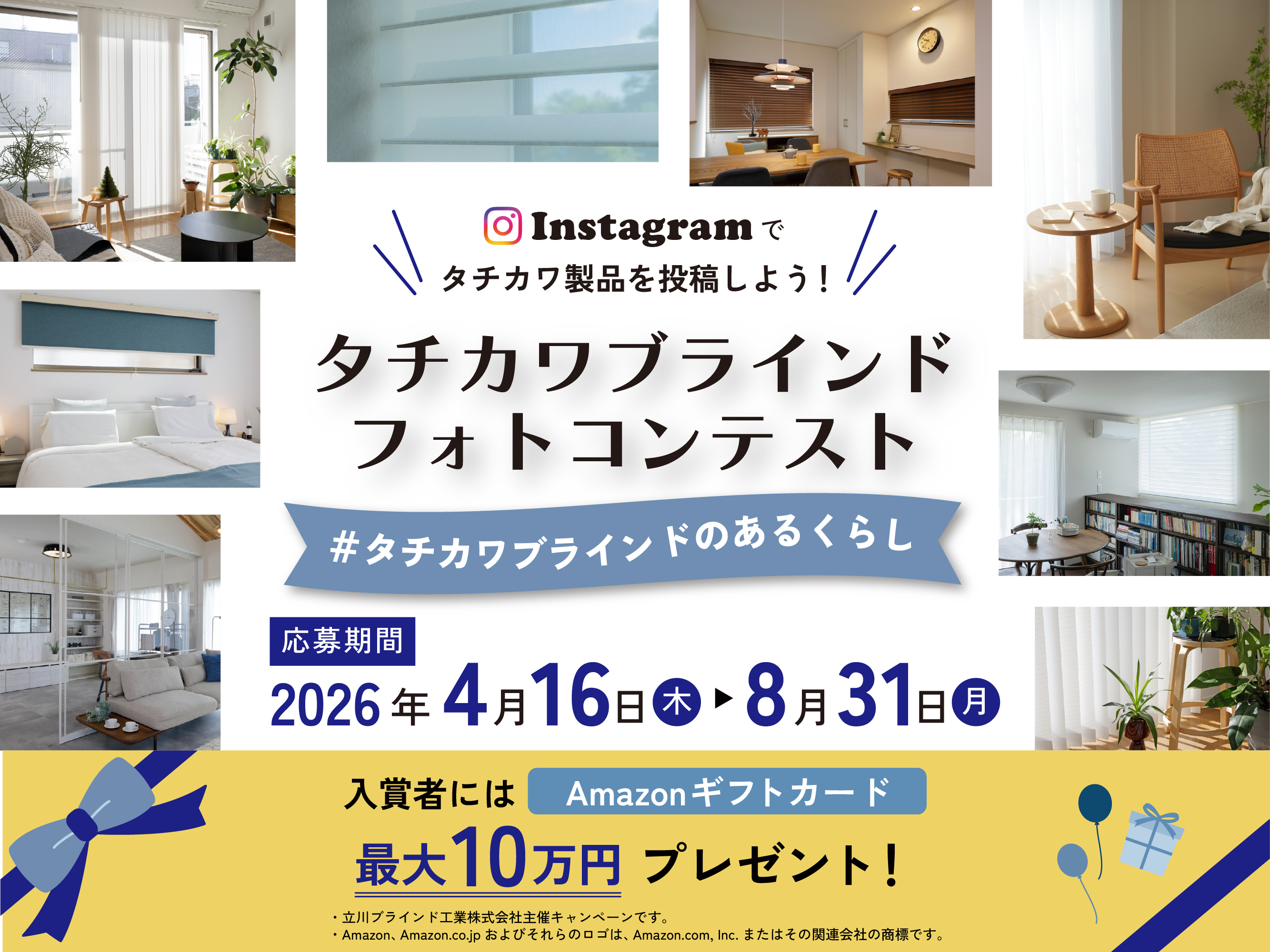 立川ブラインド工業㈱は、ブラインドや間仕切りの素敵な空間や暮らしのワンシーンをテーマに、4月16日㈭~8月31日㈪までの期間、Instagramにてフォトコンテスト「♯タチカワブラインドのあるくらし」を実施。
