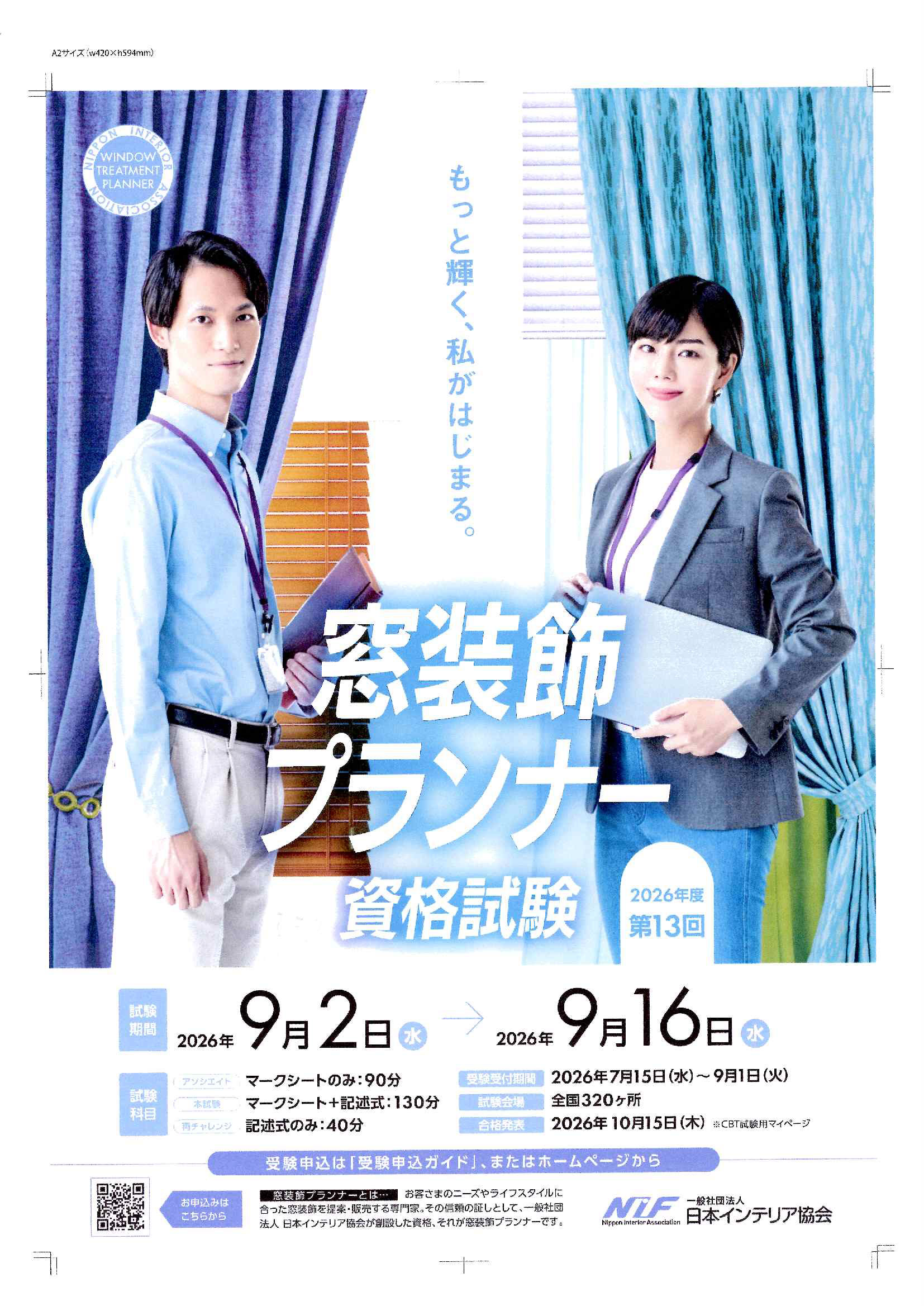 NIF 第13回窓装飾プランナー資格試験概要発表